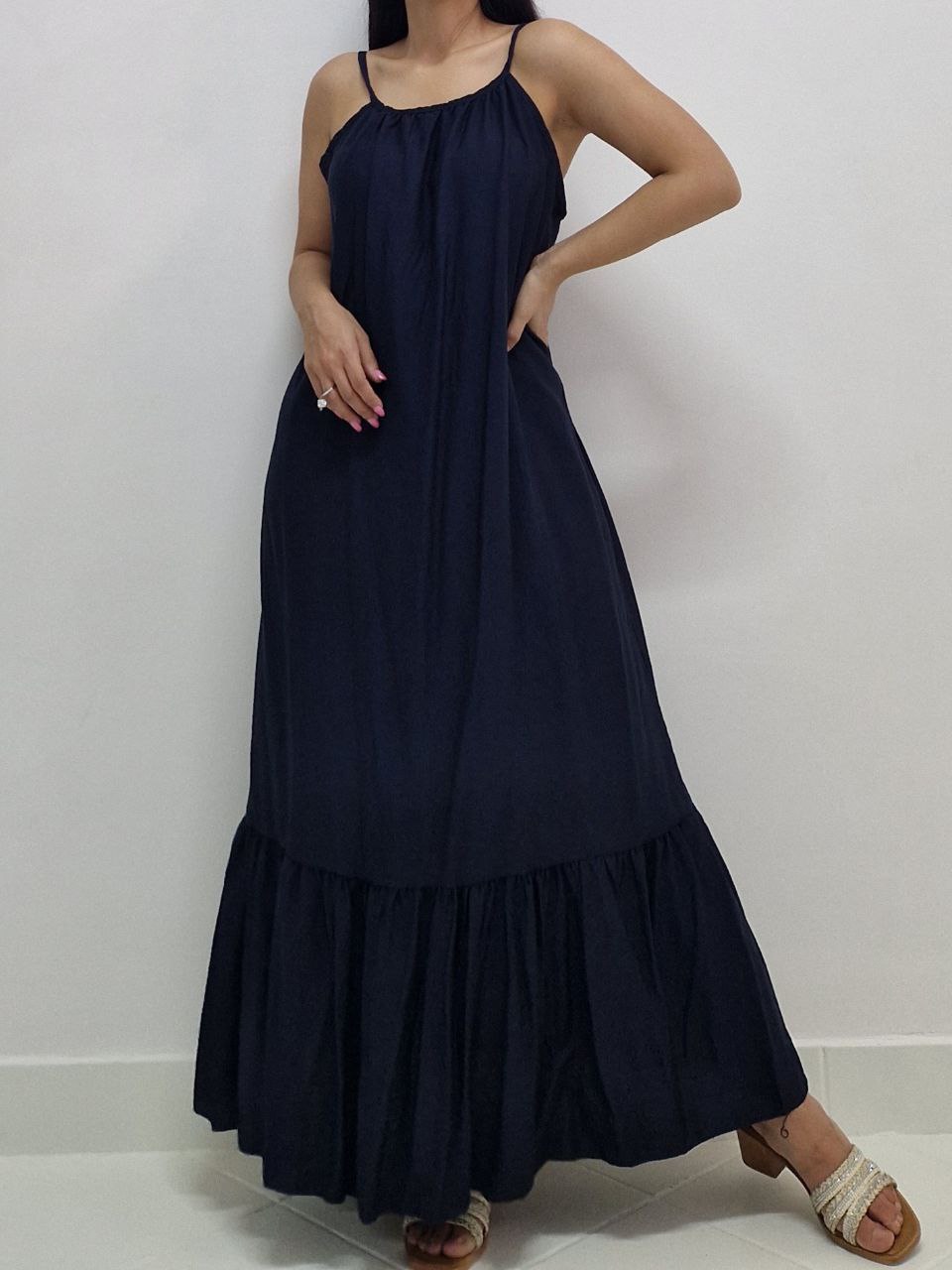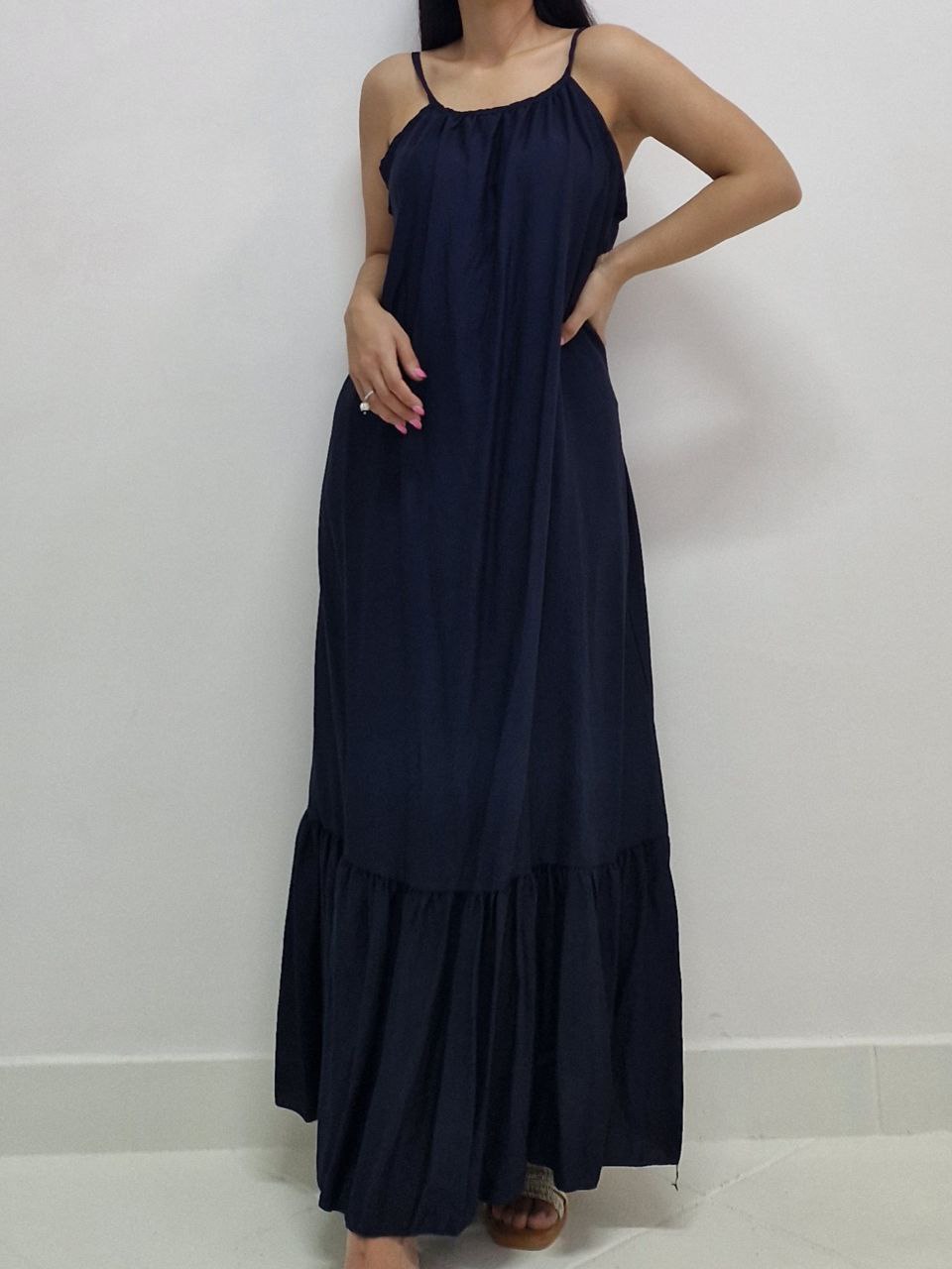 Abito morbido in simil lino, con scollatura sul retro. La taglia è unica vestibilità dalla S fino a taglia XL.