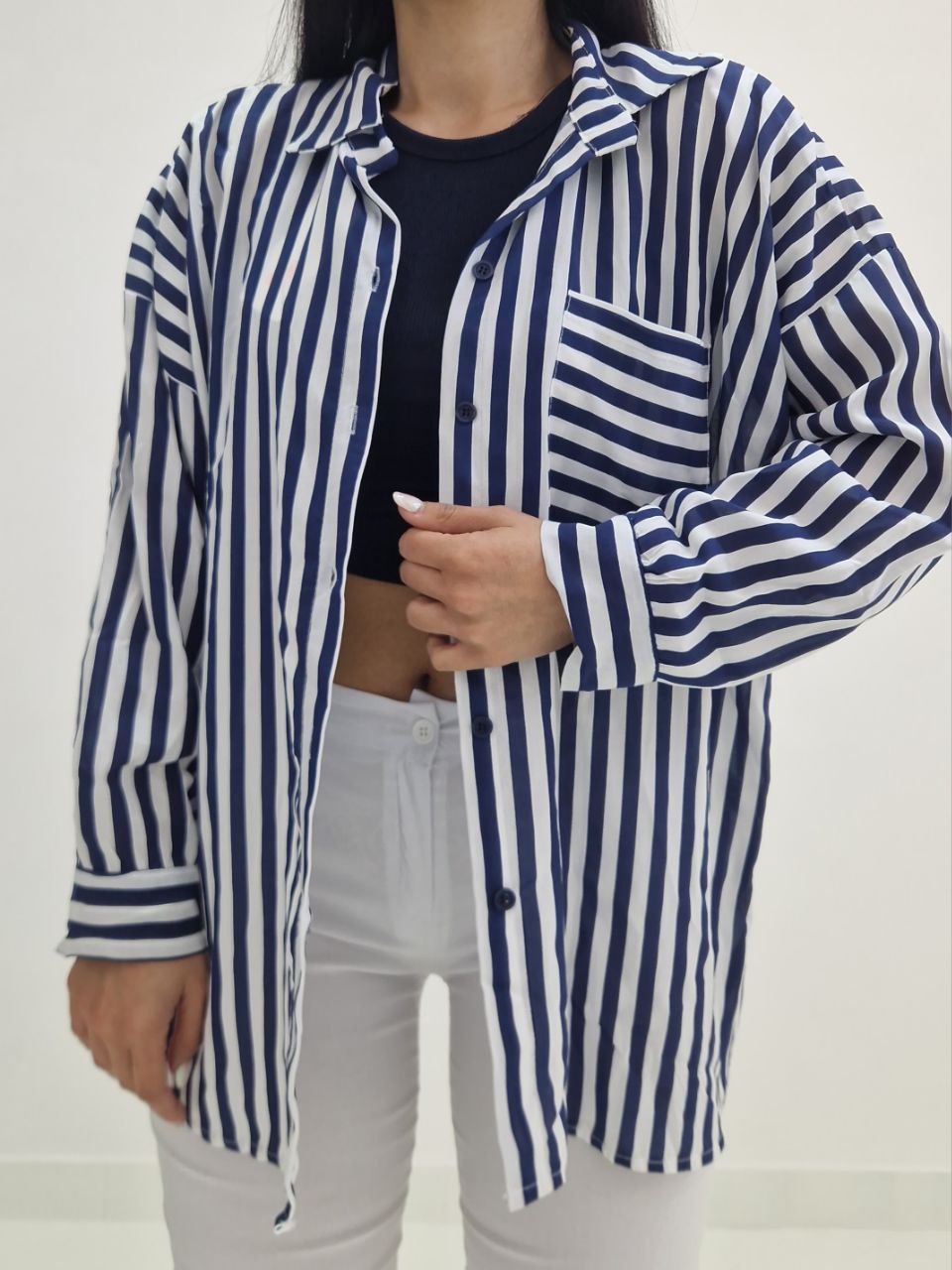 Camicia rigata con taschino in petto taglia unica, vestibilità dalla S fino alla XXL.