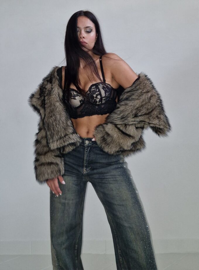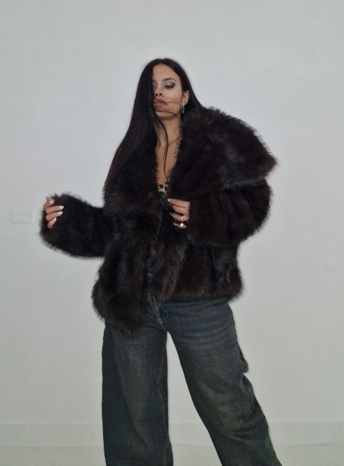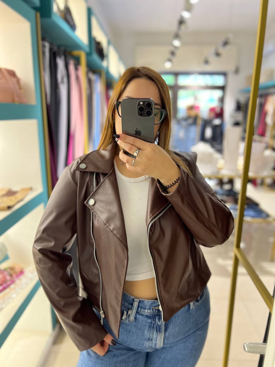Giacca in ecopelle con zip laterale sfoderato. La taglia è unica vestibilità dalla 44 fino alla 50/52.