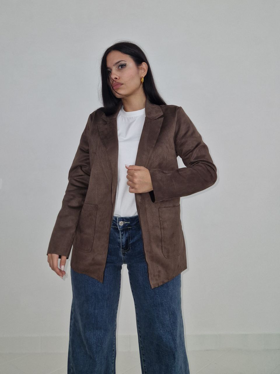 Giacca in camoscio sfoderata, leggermente elastica con tasche. La taglia è unica vestibilità dalla S fino a taglia XL.