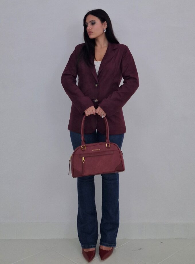 Giubbotto in ecopelle crop modello over con elastico in vita.
