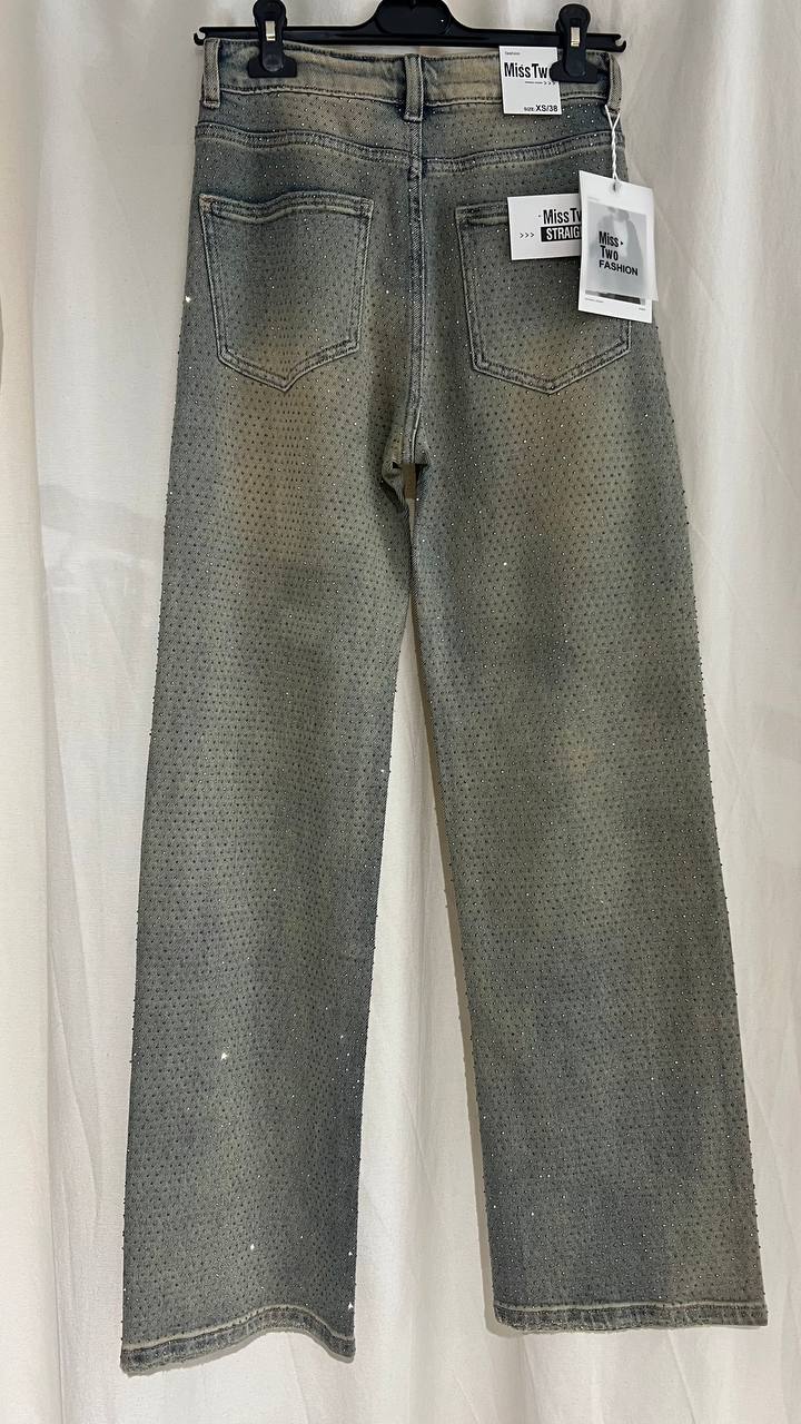 Jeans interamente brillantinato con lavaggio sfumato. Vestibilità regolare.