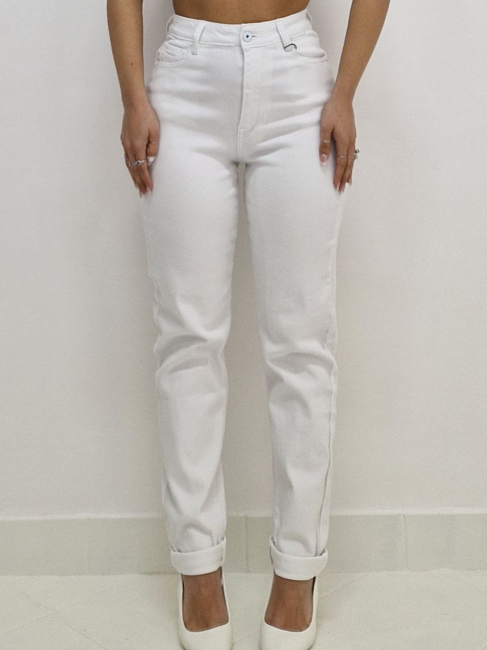 Jeans bianco elasticizzato, con tasche anteriori e posteriori.