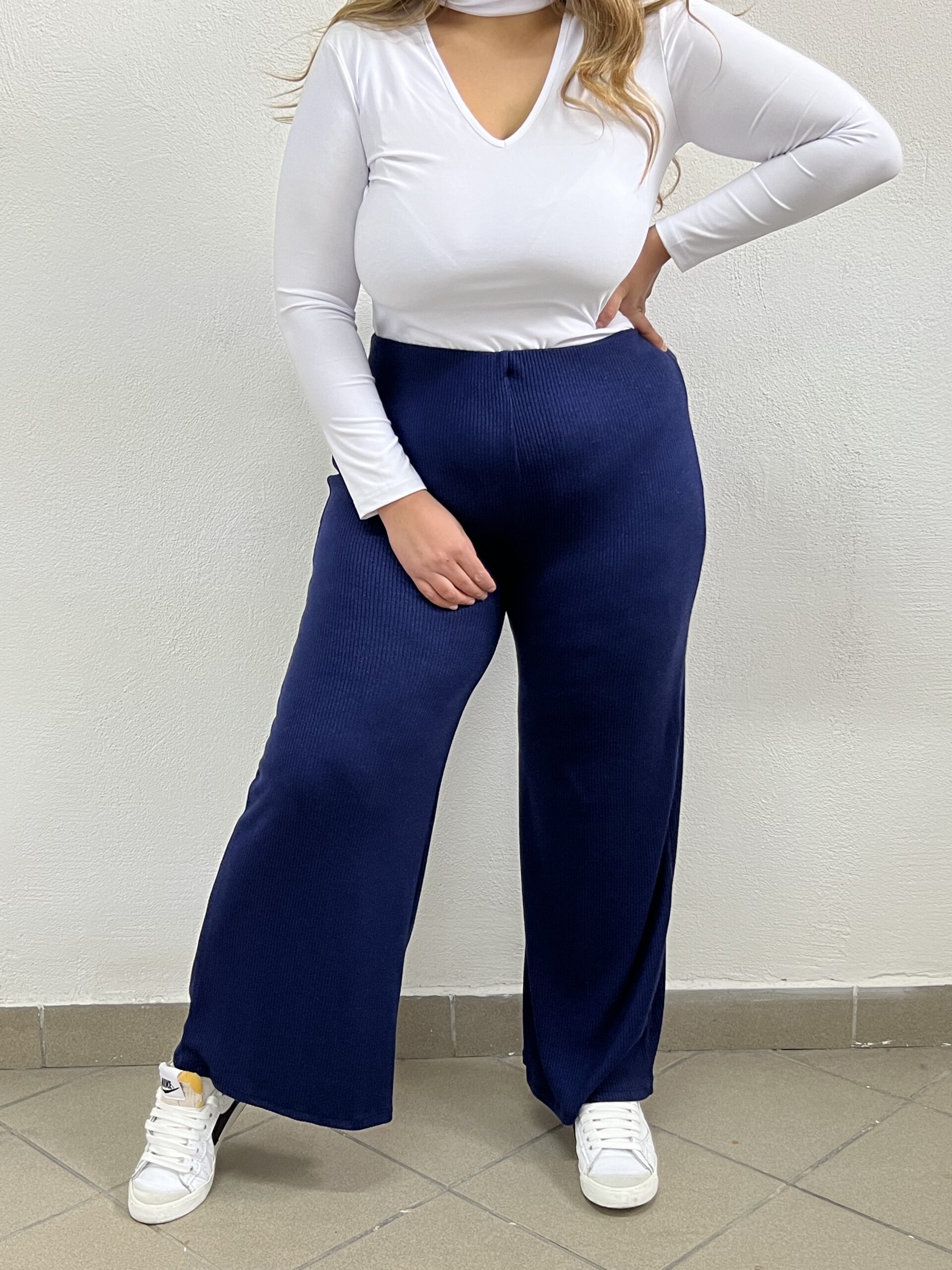 Pantalone in misto lana a palazzo glitter con elastico in vita. La taglia è unica vestibilità dalla 46/48 fino alla 52/54.