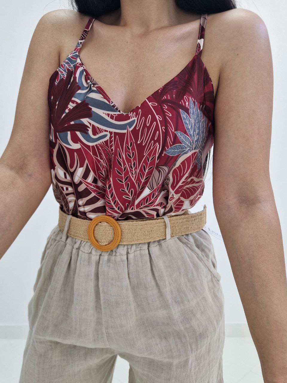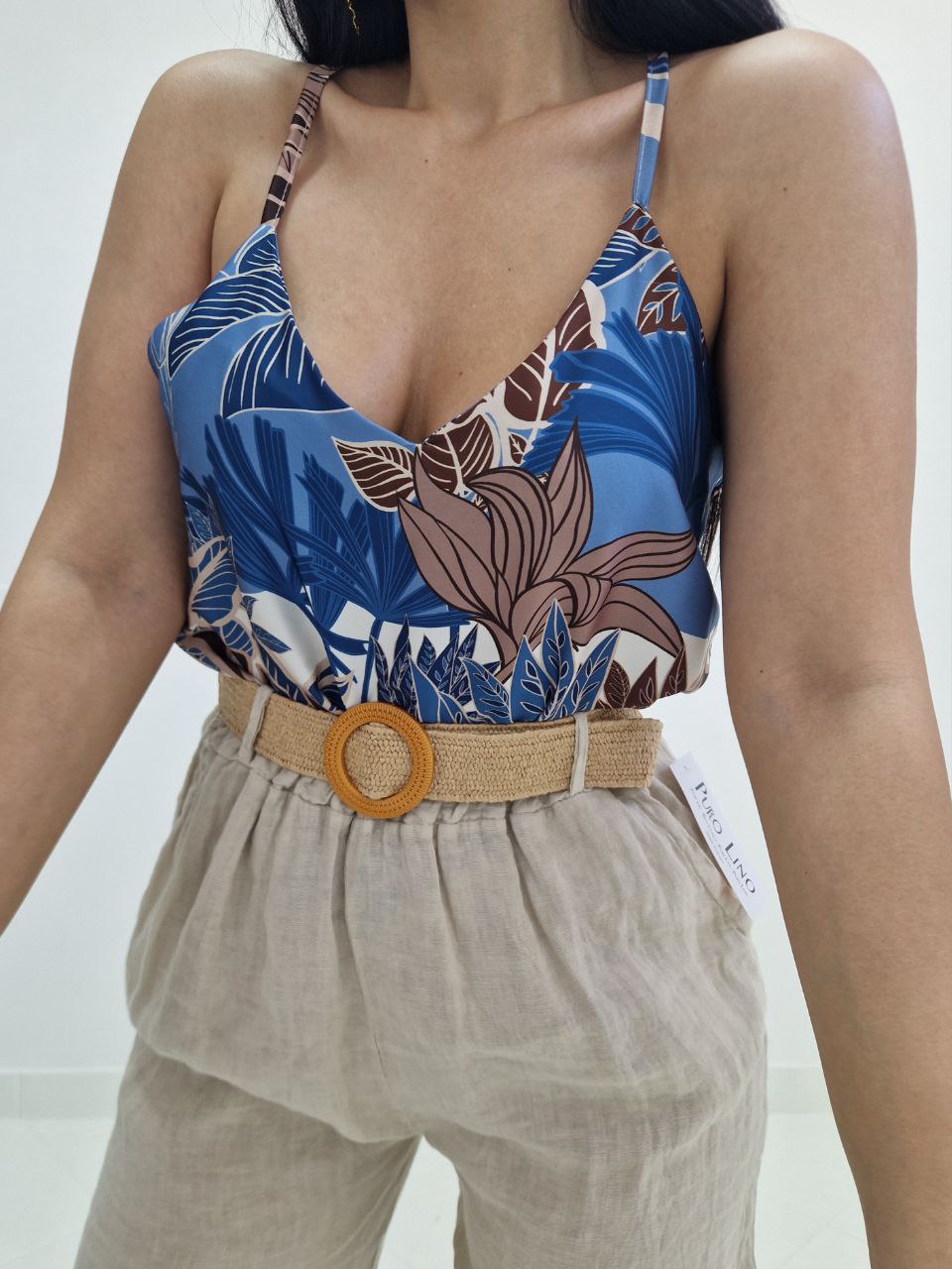 Top in raso con motivo fiori, taglia unica vestibilità fino a L/XL.